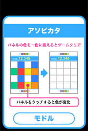 タッチすると色が変わる16枚のパネルを一色に揃えるパズルゲームです。