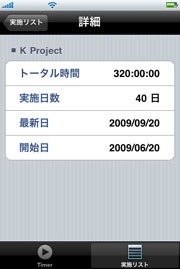 (詳細:トータル時間、実施日数、最新日、開始日)